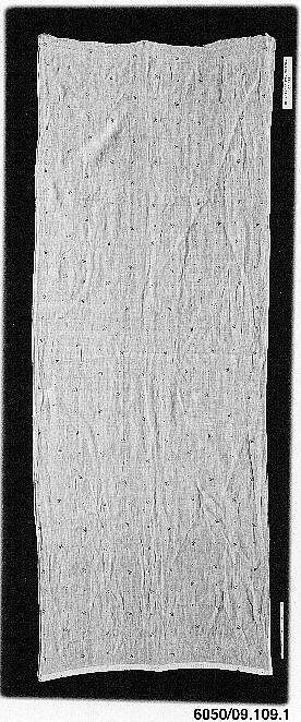 - Medium:Cotton, metal wrapped thread; plain weave, embroidered