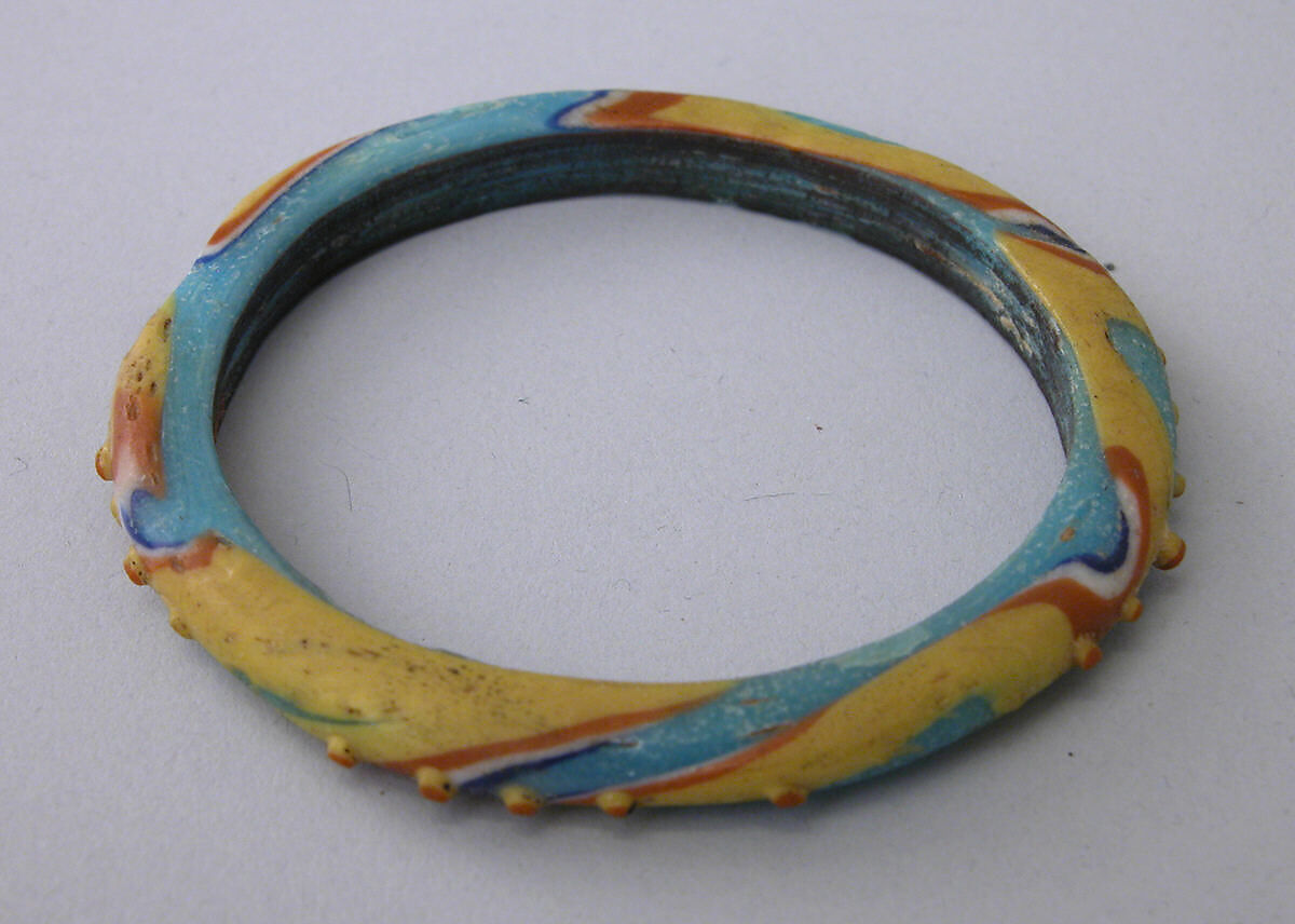 The earliest known examples of this type of seamless mosaic glass bracelet are from the late thirteenth century; it continued to be produced well into the nineteenth century at Hebron, in Palestine. This bracelet, together with thirty-three others in the collection, comes from UpperEgypt and was probably made during the Mamluk period.