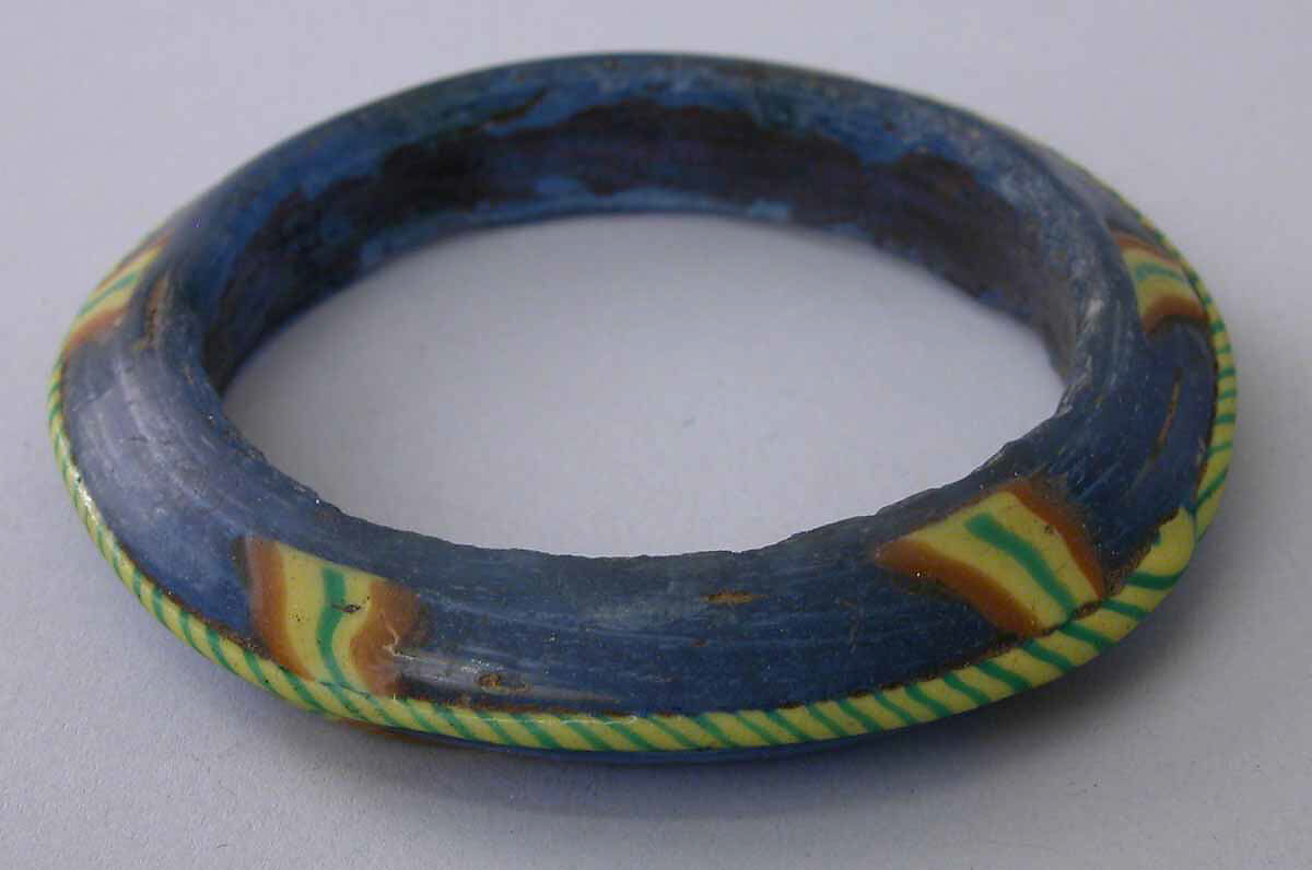 The earliest known examples of this type of seamless mosaic glass bracelet are from the late thirteenth century; it continued to be produced well into the nineteenth century at Hebron, in Palestine. This bracelet, together with thirty-three others in the collection, comes from UpperEgypt and was probably made during the Mamluk period.