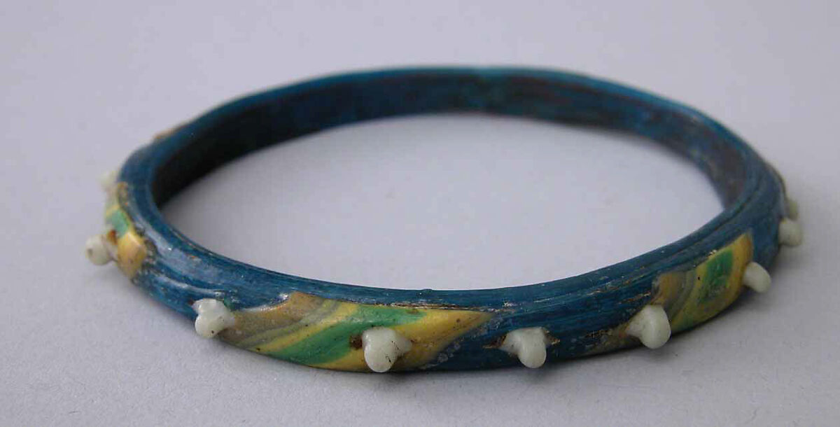 The earliest known examples of this type of seamless mosaic glass bracelet are from the late thirteenth century; it continued to be produced well into the nineteenth century at Hebron, in Palestine. This bracelet, together with thirty-three others in the collection, comes from UpperEgypt and was probably made during the Mamluk period.