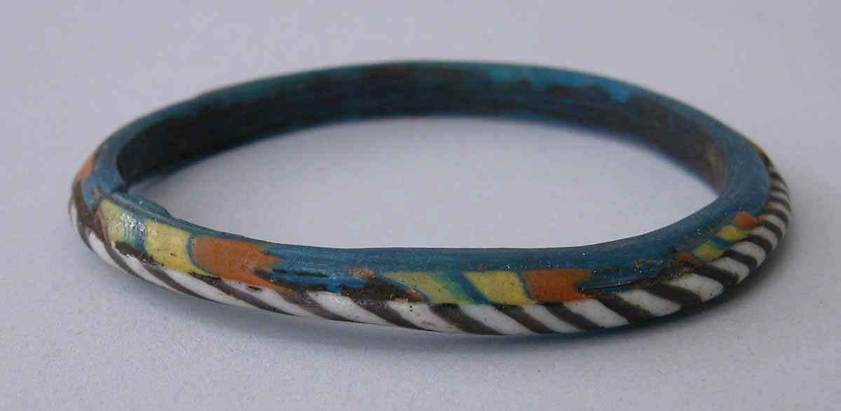 The earliest known examples of this type of seamless mosaic glass bracelet are from the late thirteenth century; it continued to be produced well into the nineteenth century at Hebron, in Palestine. This bracelet, together with thirty-three others in the collection, comes from UpperEgypt and was probably made during the Mamluk period.