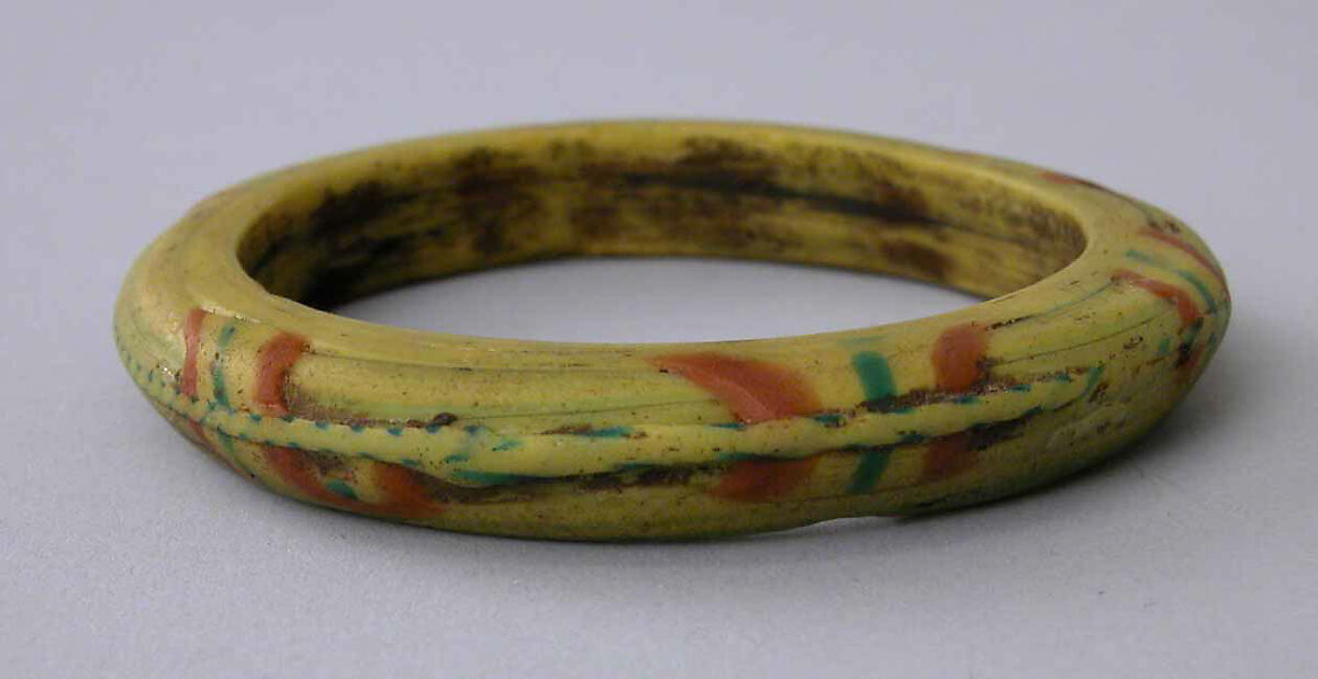 The earliest known examples of this type of seamless mosaic glass bracelet are from the late thirteenth century; it continued to be produced well into the nineteenth century at Hebron, in Palestine. This bracelet, together with thirty-three others in the collection, comes from UpperEgypt and was probably made during the Mamluk period.
