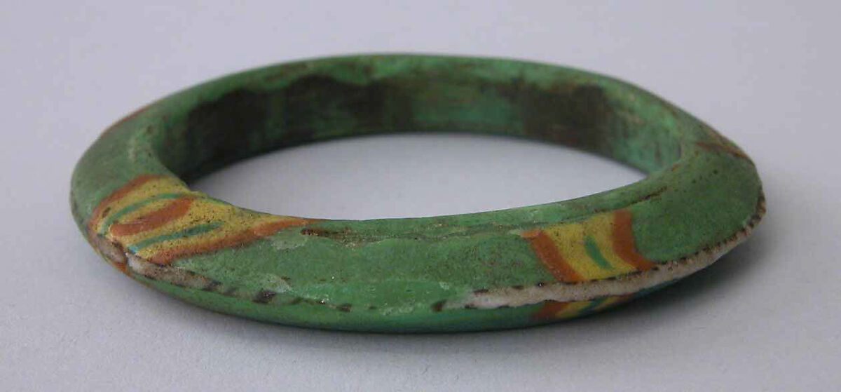 The earliest known examples of this type of seamless mosaic glass bracelet are from the late thirteenth century; it continued to be produced well into the nineteenth century at Hebron, in Palestine. This bracelet, together with thirty-three others in the collection, comes from UpperEgypt and was probably made during the Mamluk period.