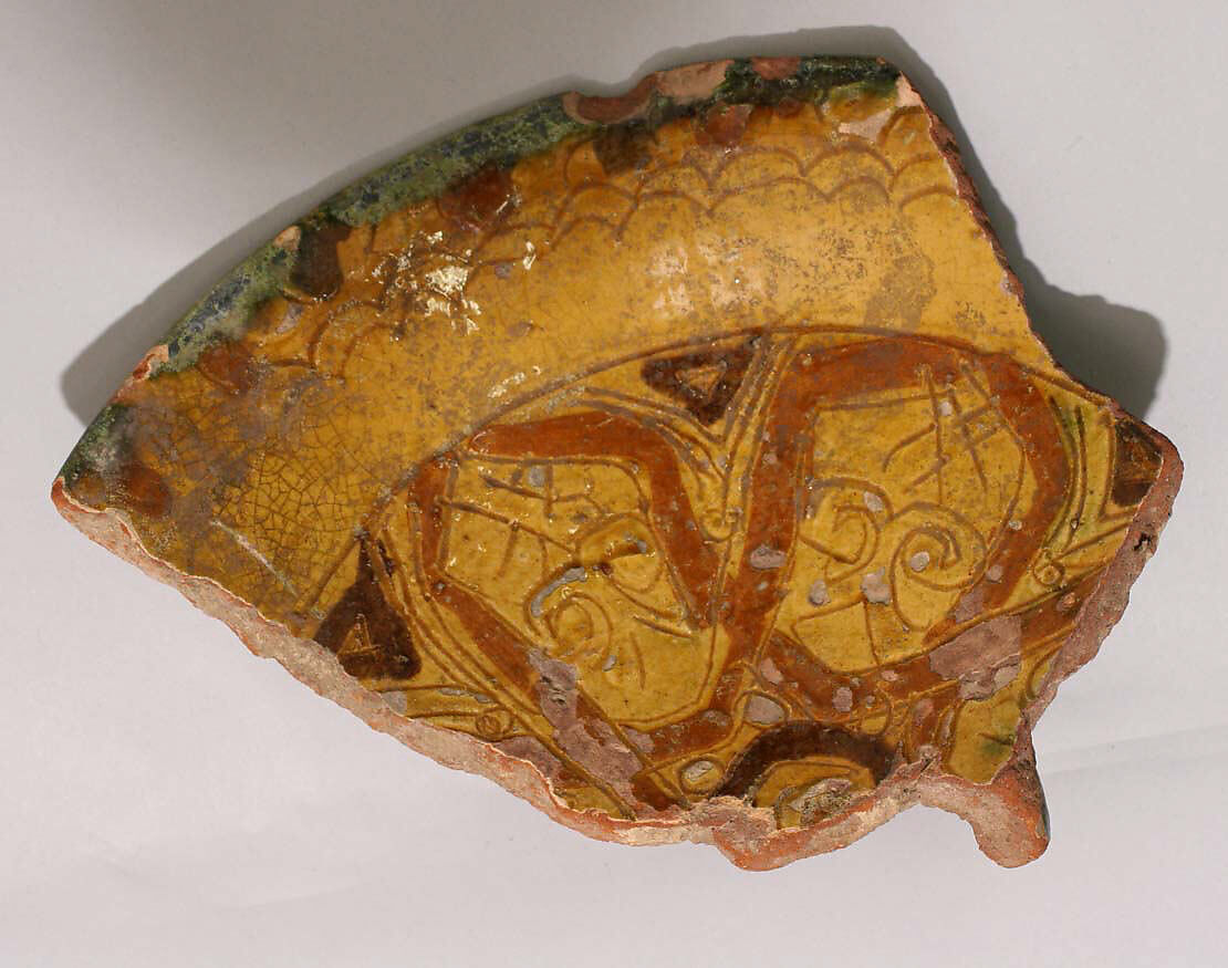 - Medium: Earthenware; incised and slip-painted under transparent glaze