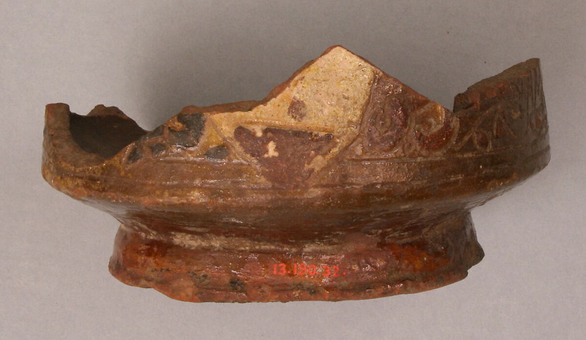 - Medium:Earthenware; incised decoration through white slip and coloring under transparent glaze