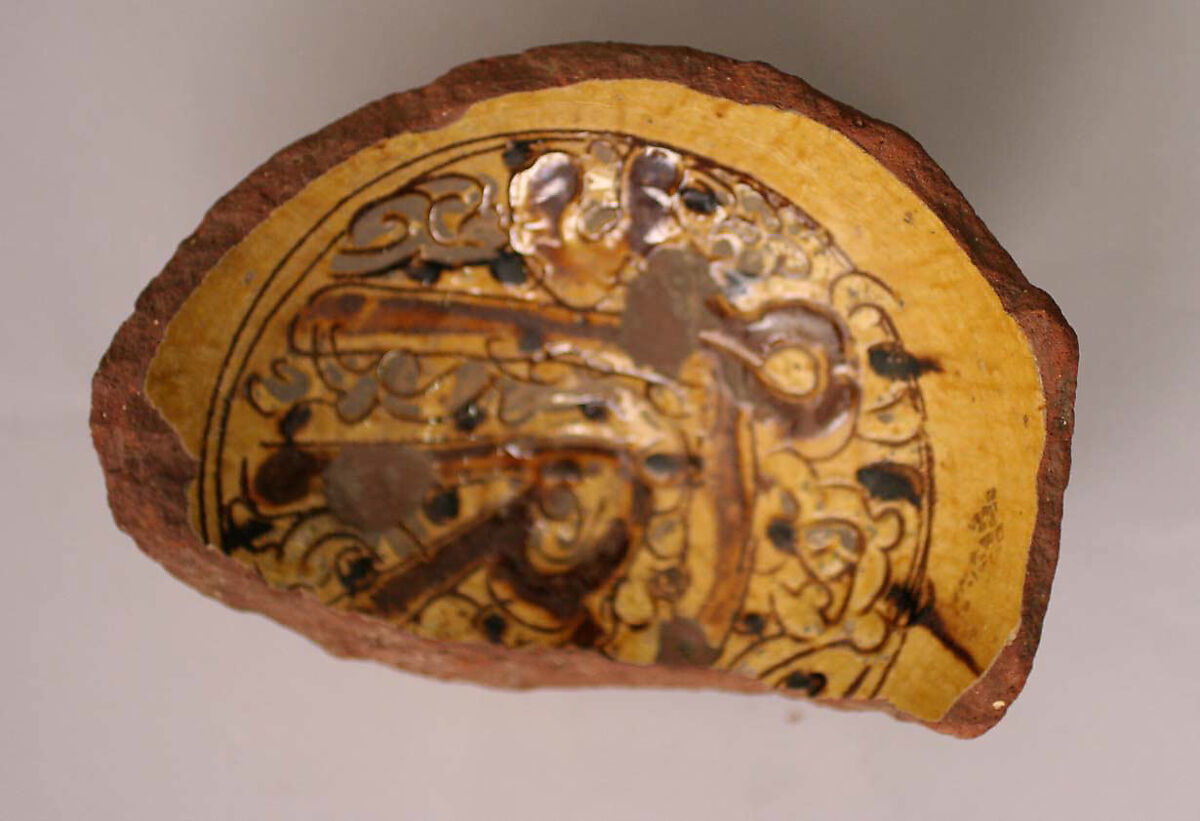 - Medium: Earthenware; incised decoration through white slip and coloring under transparent glaze.