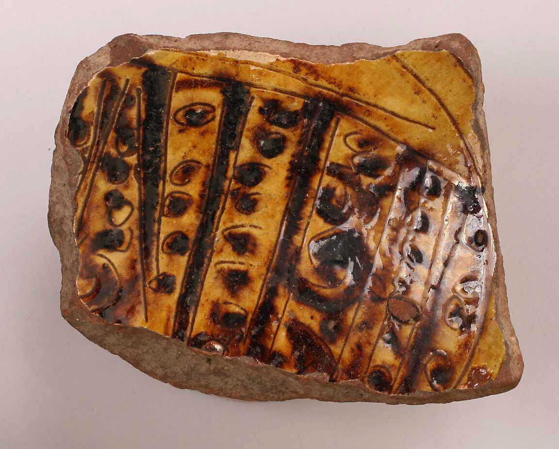 - Medium:Earthenware; incised decoration through white slip and coloring under transparent glaze