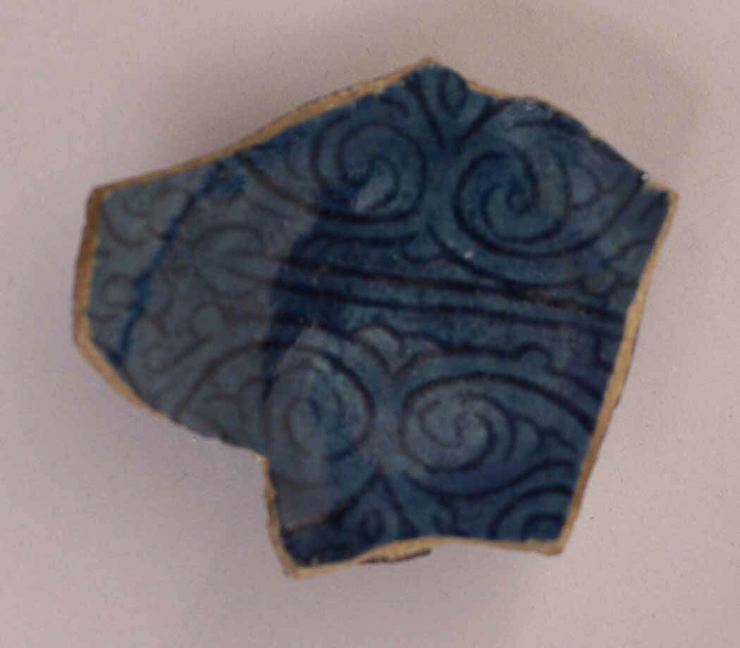 - Medium: Earthenware; incised decoration under cobalt blue glaze