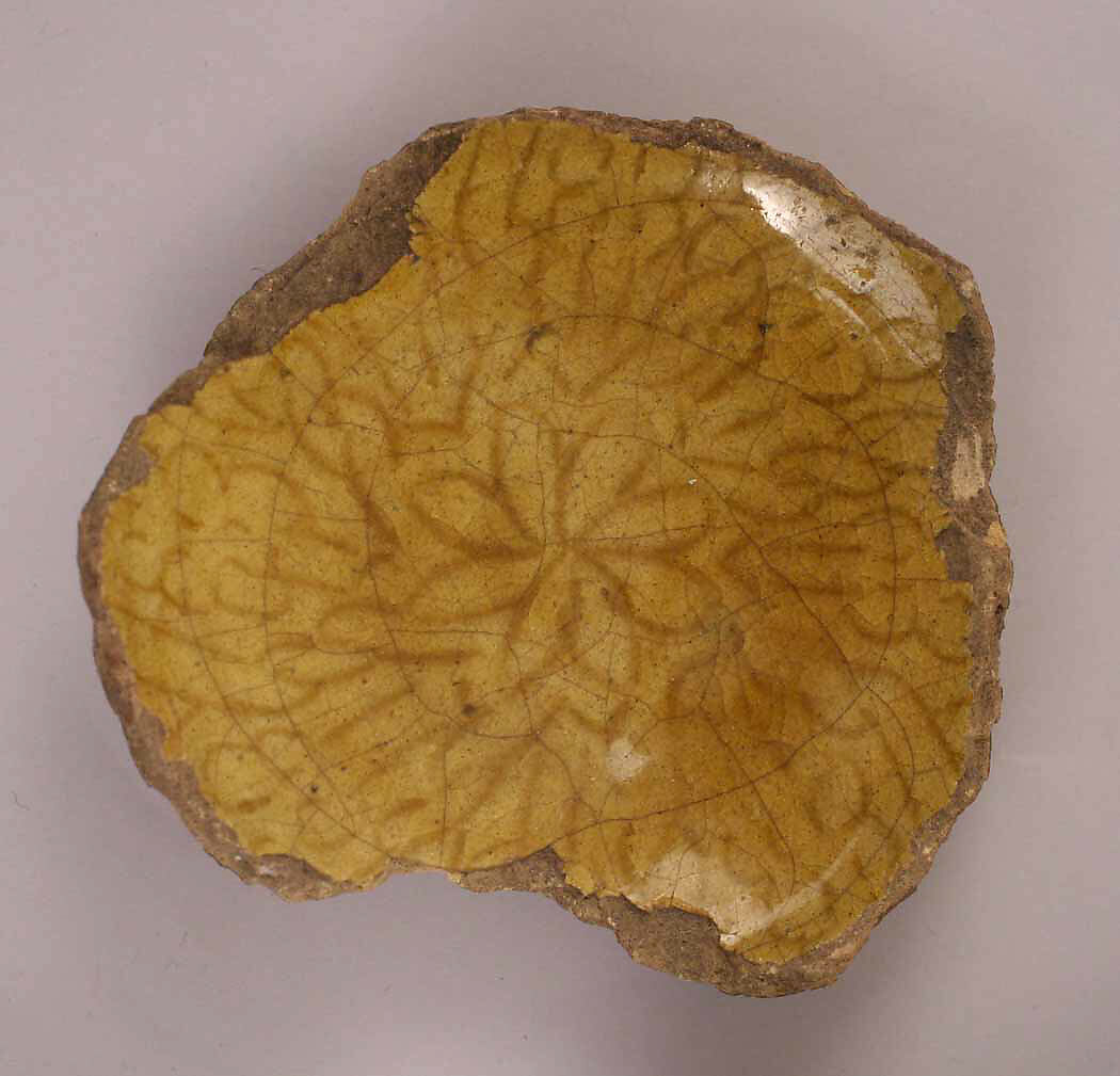 - Medium:Earthenware; incised decoration under yellow glaze