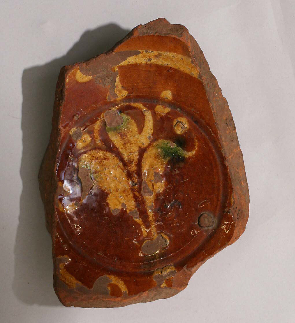- Medium: Earthenware; slip-painted under transparent glaze