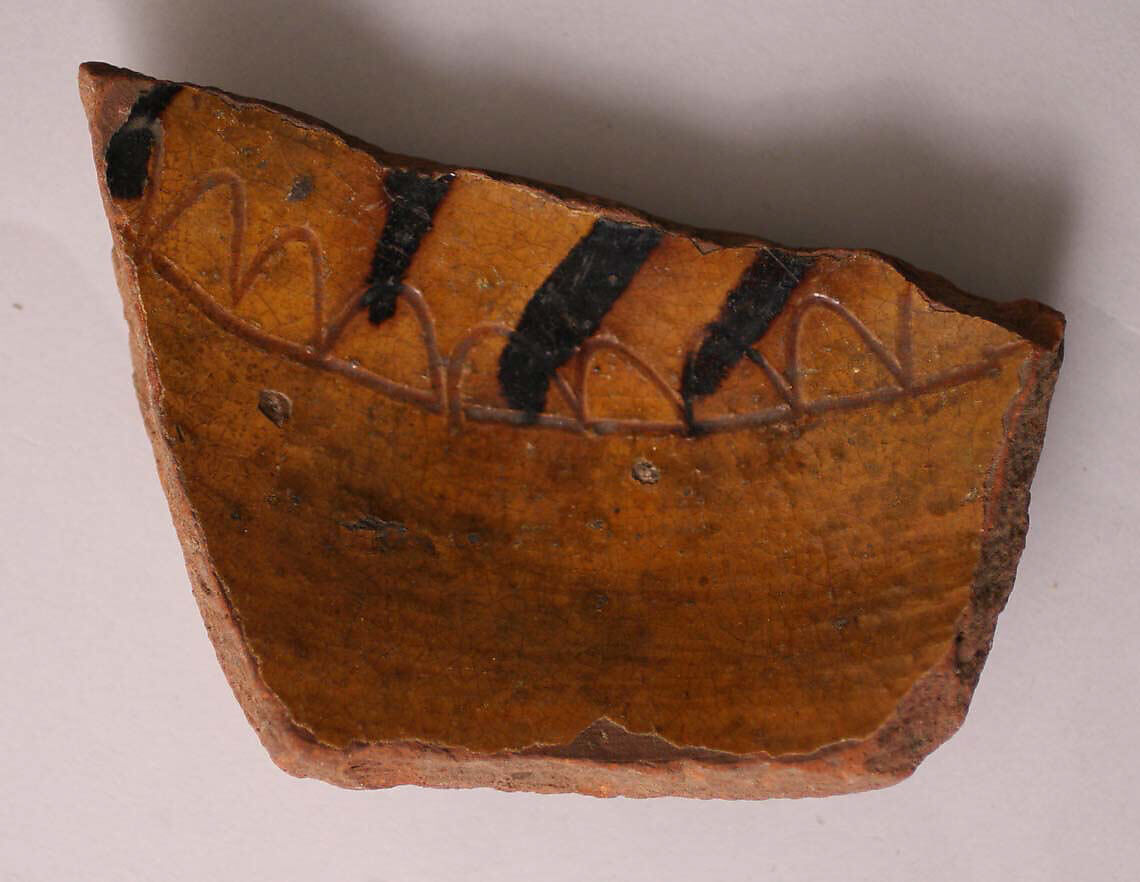 - Medium:Earthenware; incised decoration through white slip and coloring under transparent glaze