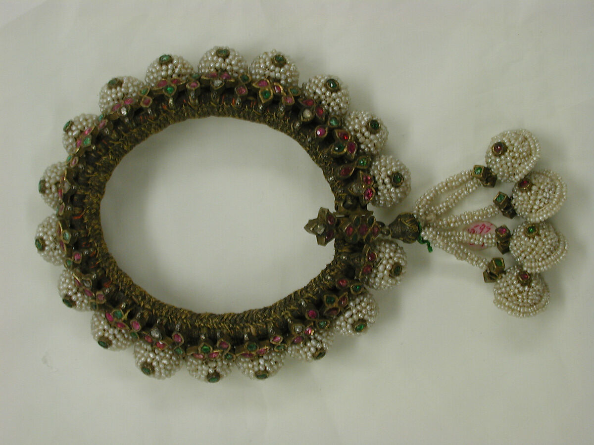 This ornament was formerly in the collection of American artist and designer Lockwood de Forest (1850–1932) who purchased many items while traveling in India between 1879–1881. He collected many different examples of jewelry from India, including several of the same type. Today, his assemblage in the Met serves as an in-depth study collection of Indian jewelry from the late nineteenth century.