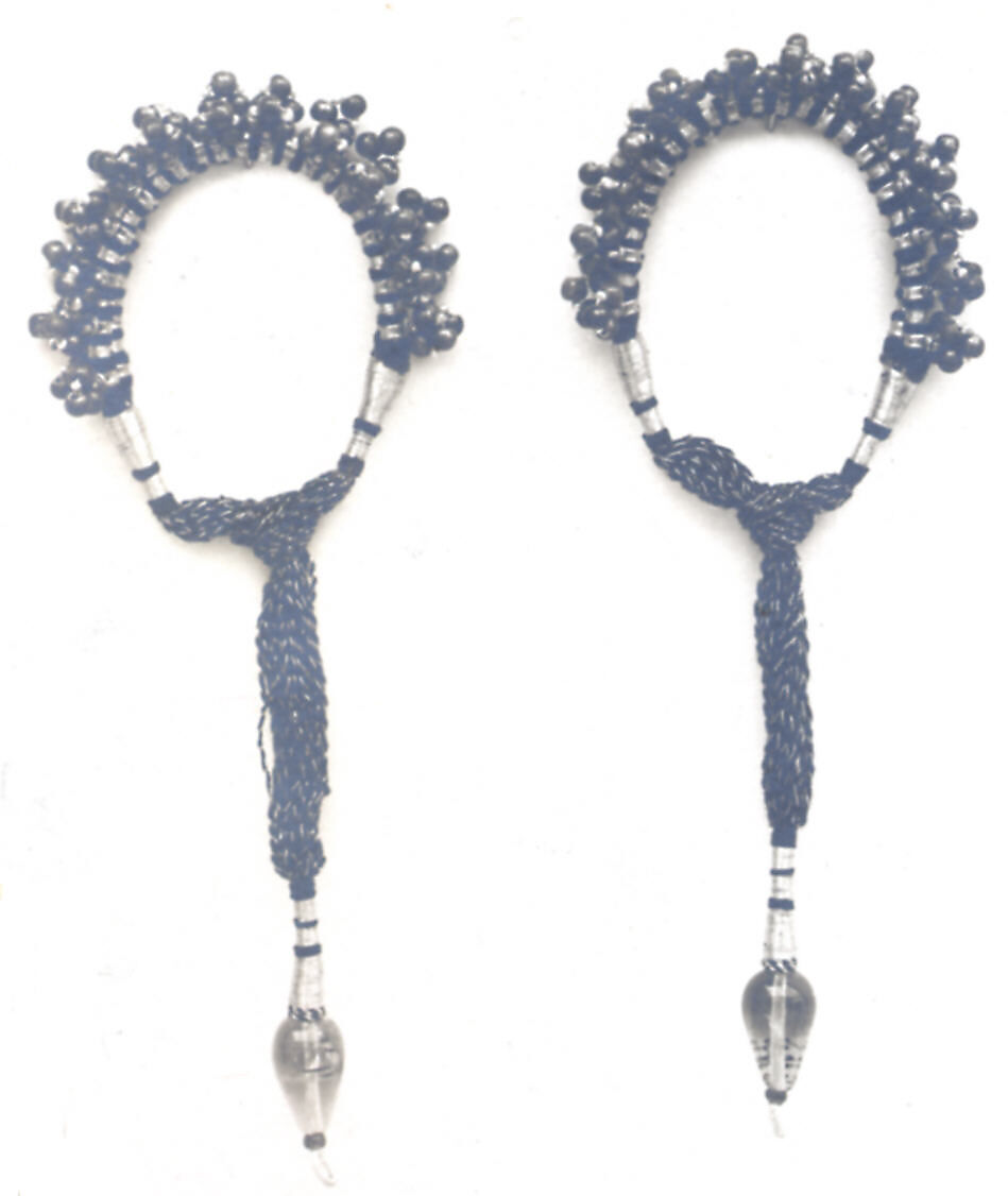 Jewelry in India was not restricted to wealthy members of society, but rather produced with varying materials to appeal to a range of economic classes. This pair of armlets, or bazubands were made from silver, embellished colored threads and green glass beads, and would have been owned by someone of modest means. Such jewels were worn on the upper bicep, and the tassels with green beads would have embellished the back of the arm.