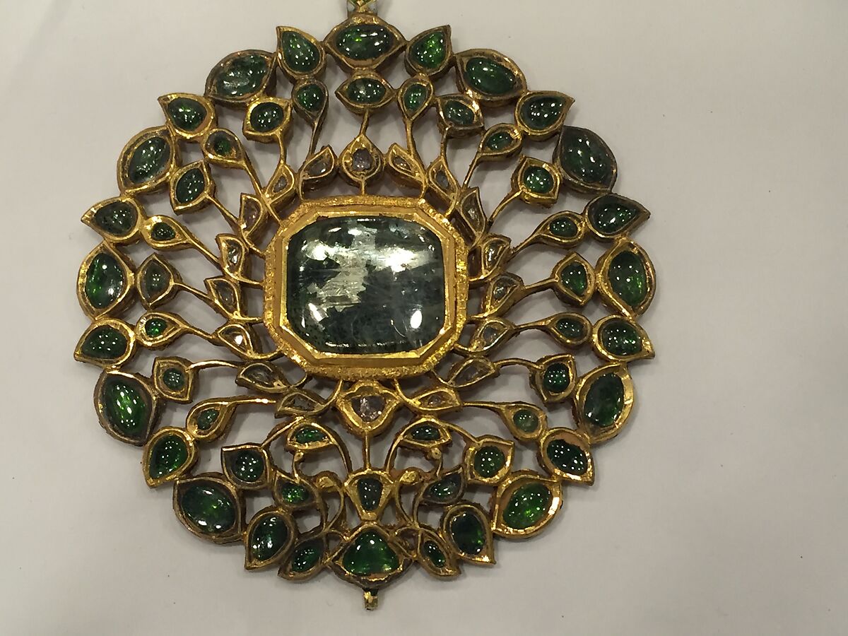This ornament was formerly in the collection of American artist and designer Lockwood de Forest (1850–1932) who purchased many jeweled objects while traveling in India between 1879–1881. Today, his collection of Indian jewelry in the Met serves as a near-comprehensive assemblage of late nineteenth century bodily adornment.