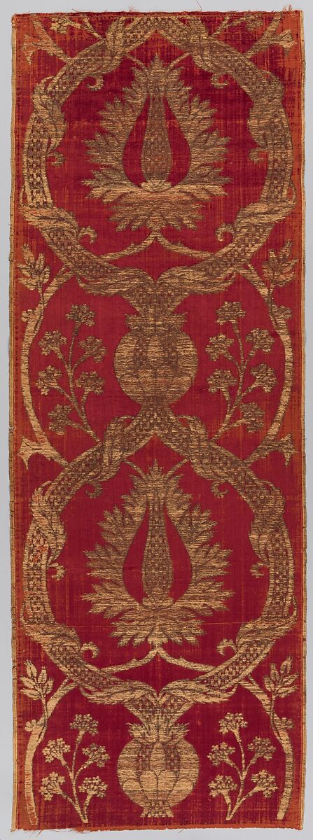 - Medium: Silk, metal wrapped thread; cut and voided velvet, brocaded