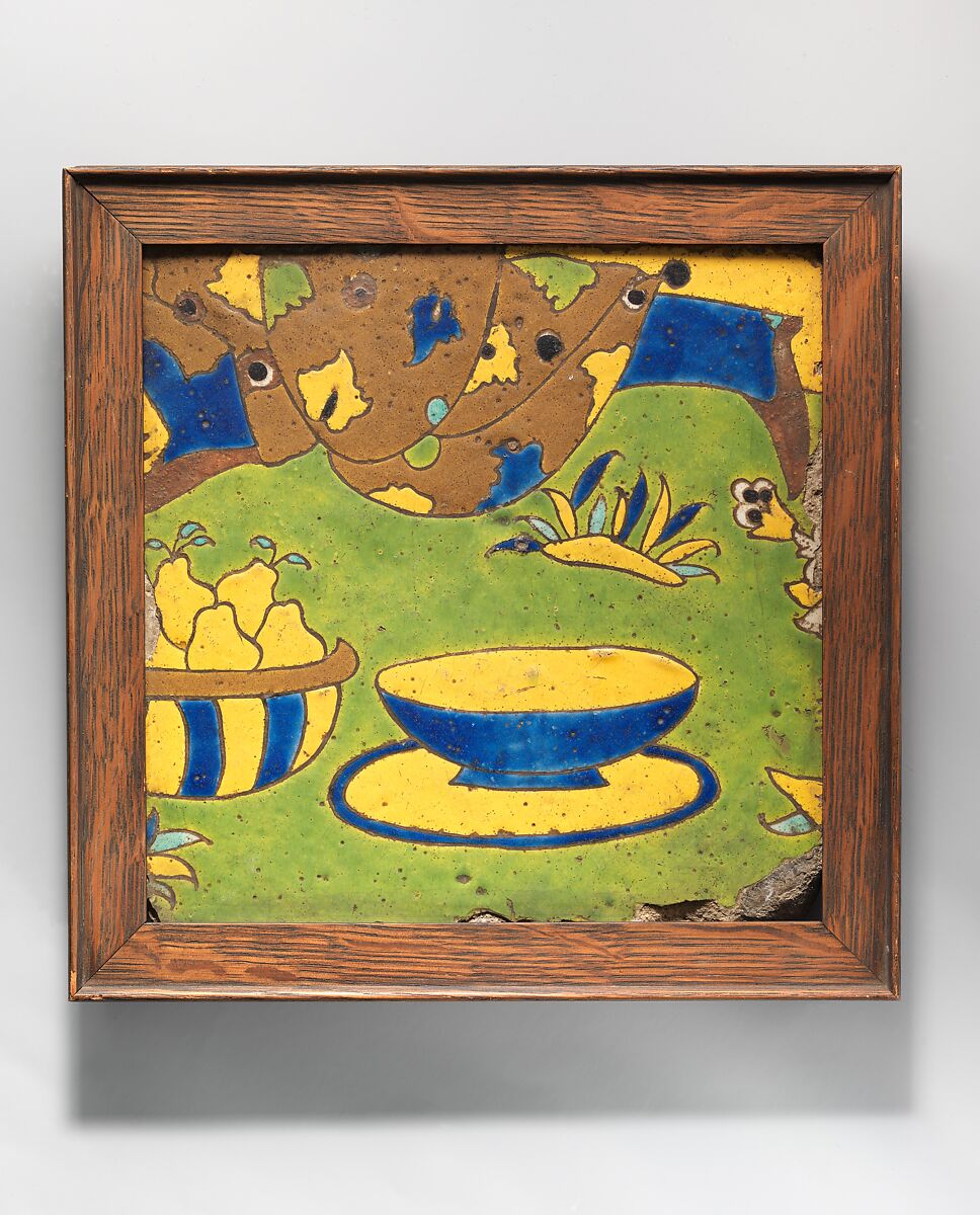 - Medium:Stonepaste; polychrome glaze within wax resist outlines (cuerda seca technique)