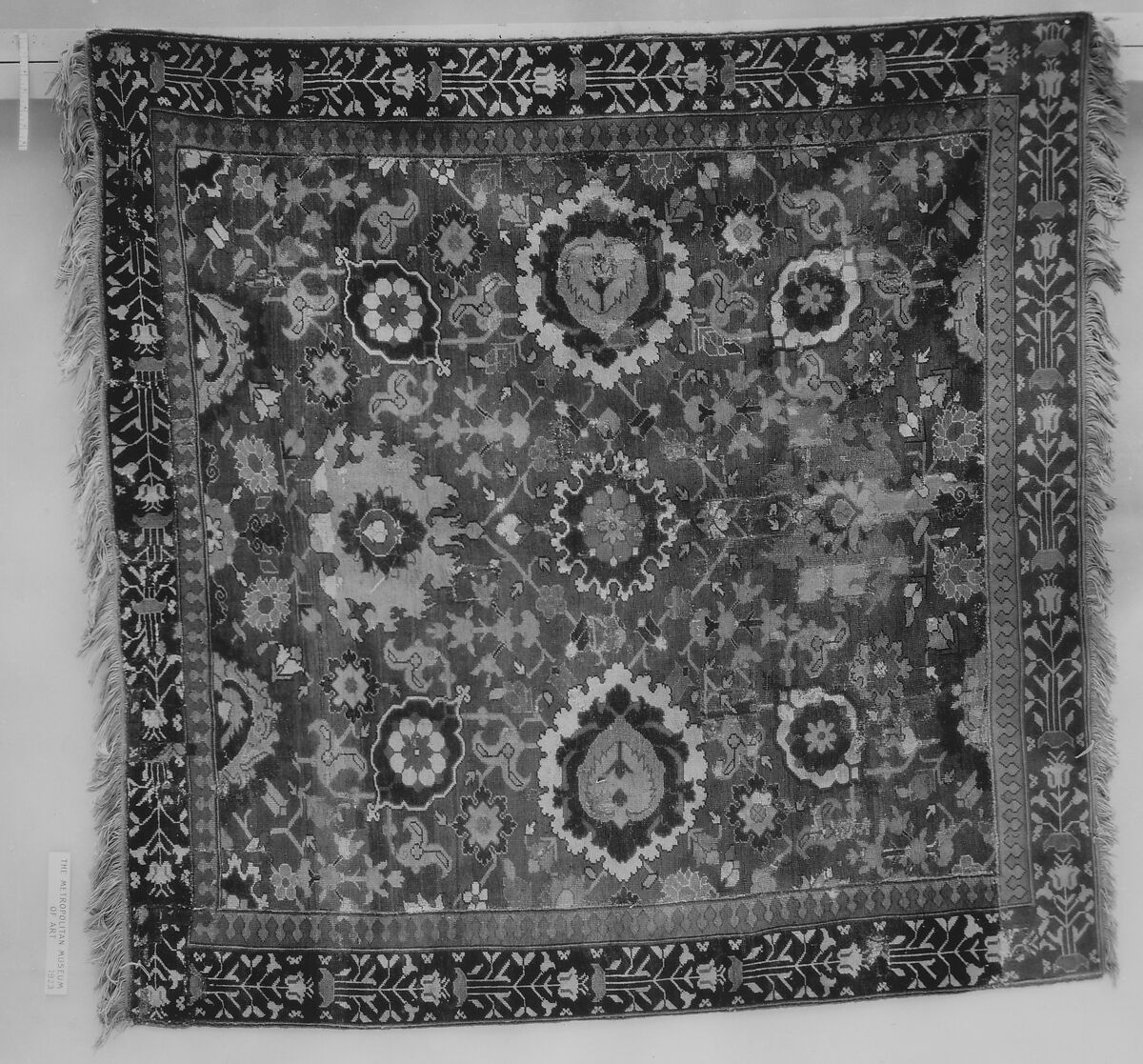 - Medium: Linen (warp), wool (weft and pile); symmetrically knotted pile