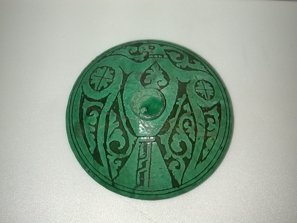 - Medium: Earthenware; white slip-covered, carved decoration under a monochrome glaze (Garrus ware)
