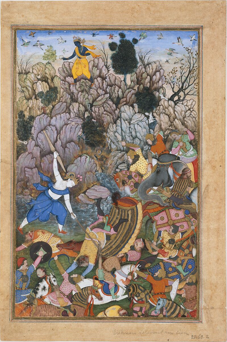 - Title: "Balarama and Krishna Fighting the Enemy", Folio from a Harivamsa (The Legend of Hari (Krishna))