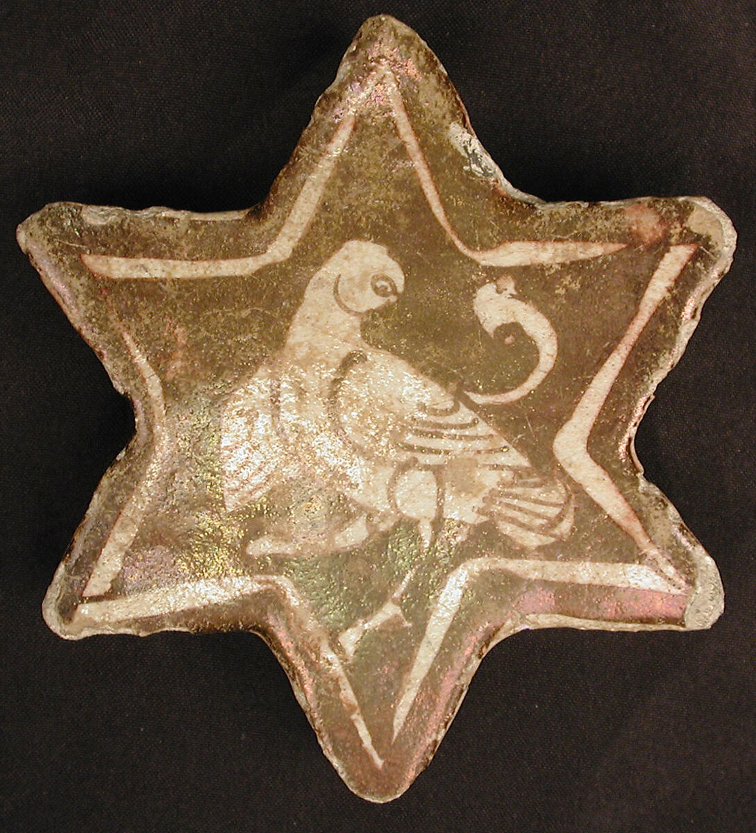 - Medium: Stonepaste; overglaze and luster-painted