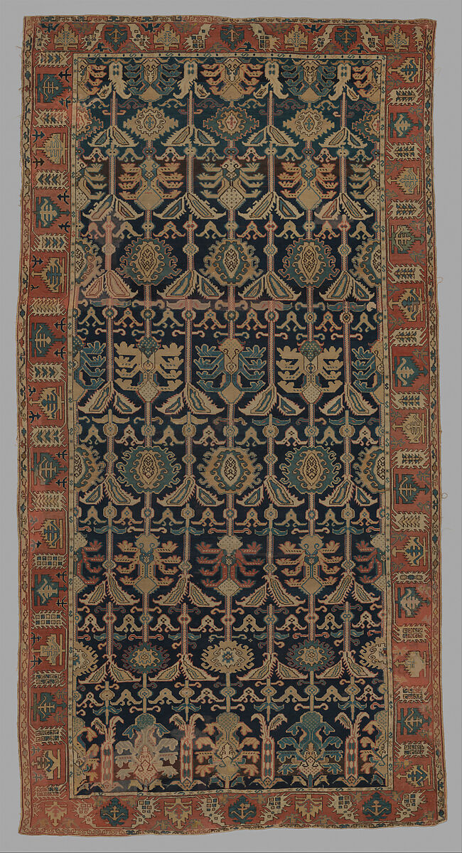 - Medium: Wool (warp, weft and pile); symmetrically knotted pile