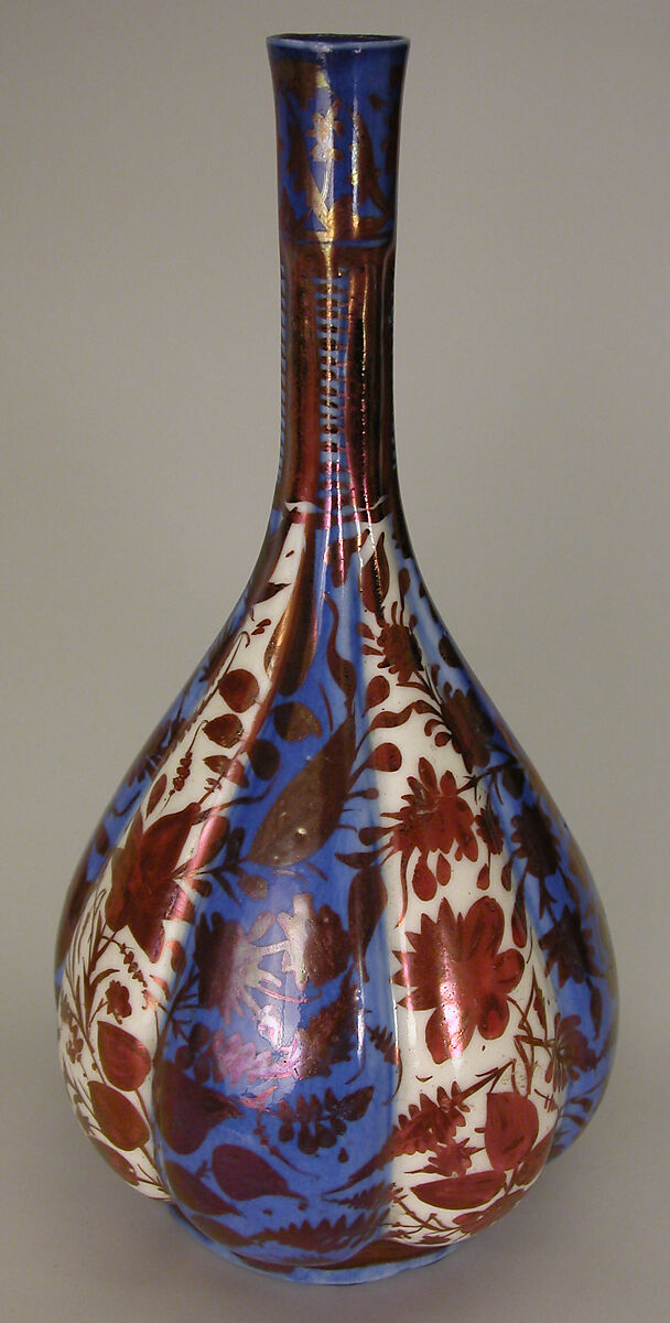 - Medium:Stonepaste; luster-painted on opaque white and blue glaze