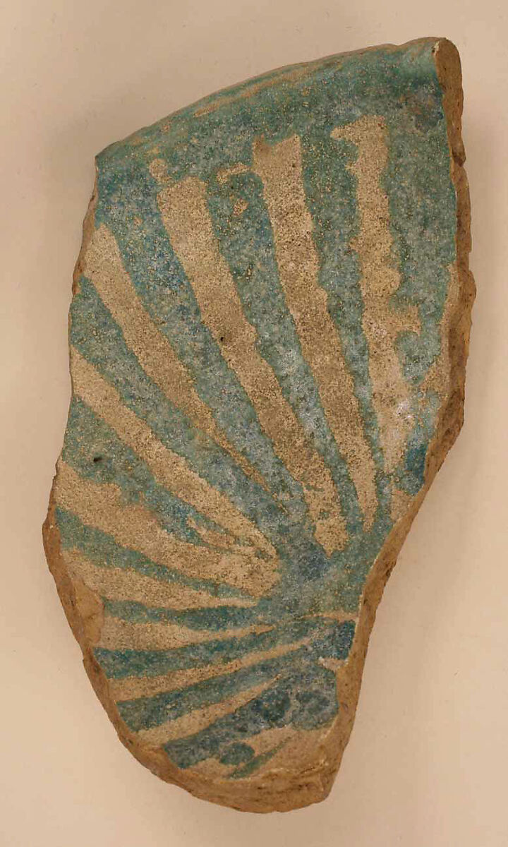 This ceramic fragment was excavated in Ctesiphon, the Sasanian metropolis and administrative capital conquered by Arab Muslim armies in 637. The city continued to be inhabited throughout the era, when it was known in Arabic as al-Mada’in, or "the cities", because of the expansive area it encompassed. Arab and Persian historians and poets indulged in describing al-Mada’in/Ctesiphon’s grand monuments. Muslim rulers also celebrated the glory of these monuments, which through time had acquired symbolic significance due to their association with the city’s imperial past. This was the case of the Taq-i Kisra, an impressive colossal ivan (a vaulted hall with one side open) that was partially dismantled to reuse its bricks in caliphal buildings in the new capital of Baghdad.