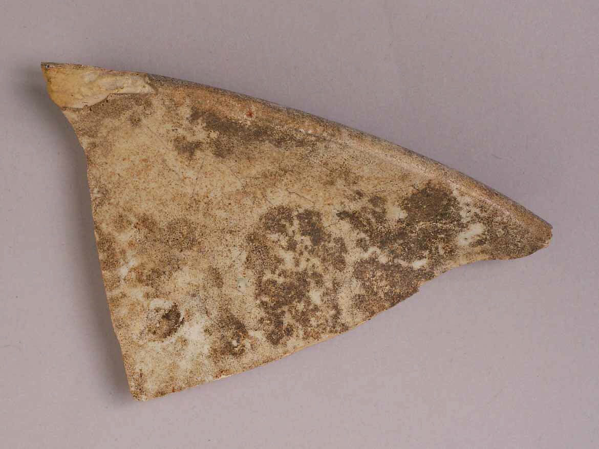 This ceramic fragment was excavated in Ctesiphon, the Sasanian metropolis and administrative capital conquered by Arab Muslim armies in 637. The city continued to be inhabited throughout the era, when it was known in Arabic as al-Mada’in, or "the cities", because of the expansive area it encompassed. Arab and Persian historians and poets indulged in describing al-Mada’in/Ctesiphon’s grand monuments. Muslim rulers also celebrated the glory of these monuments, which through time had acquired symbolic significance due to their association with the city’s imperial past. This was the case of the Taq-i Kisra, an impressive colossal ivan (a vaulted hall with one side open) that was partially dismantled to reuse its bricks in caliphal buildings in the new capital of Baghdad.