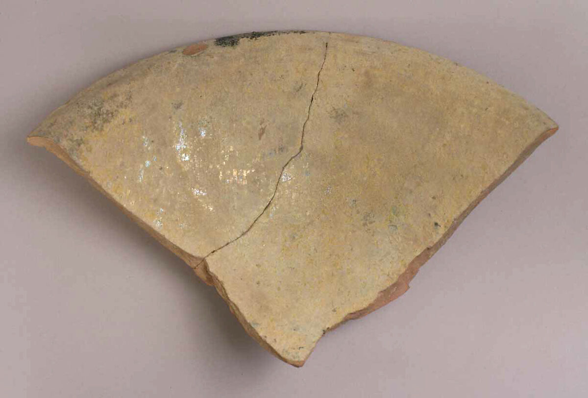 This ceramic fragment was excavated in Ctesiphon, the Sasanian metropolis and administrative capital conquered by Arab Muslim armies in 637. The city continued to be inhabited throughout the era, when it was known in Arabic as al-Mada’in, or "the cities", because of the expansive area it encompassed. Arab and Persian historians and poets indulged in describing al-Mada’in/Ctesiphon’s grand monuments. Muslim rulers also celebrated the glory of these monuments, which through time had acquired symbolic significance due to their association with the city’s imperial past. This was the case of the Taq-i Kisra, an impressive colossal ivan (a vaulted hall with one side open) that was partially dismantled to reuse its bricks in caliphal buildings in the new capital of Baghdad.