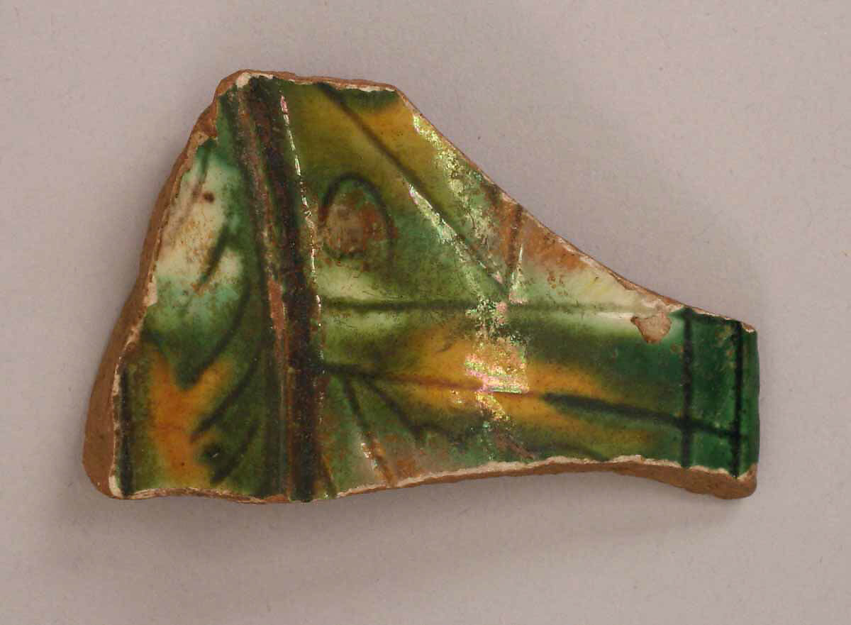 This ceramic fragment was excavated in Ctesiphon, the Sasanian metropolis and administrative capital conquered by Arab Muslim armies in 637. The city continued to be inhabited throughout the era, when it was known in Arabic as al-Mada’in, or "the cities", because of the expansive area it encompassed. Arab and Persian historians and poets indulged in describing al-Mada’in/Ctesiphon’s grand monuments. Muslim rulers also celebrated the glory of these monuments, which through time had acquired symbolic significance due to their association with the city’s imperial past. This was the case of the Taq-i Kisra, an impressive colossal ivan (a vaulted hall with one side open) that was partially dismantled to reuse its bricks in caliphal buildings in the new capital of Baghdad.