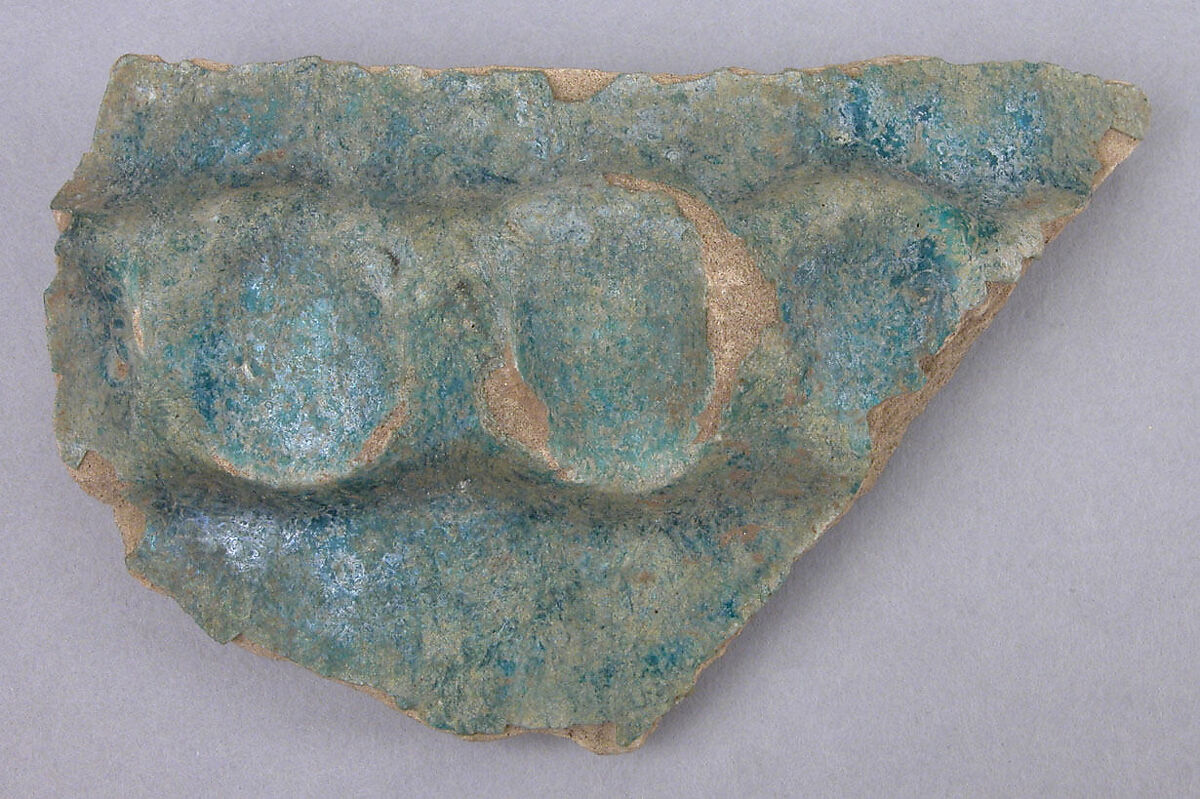 This fragment belongs to a long-standing tradition of turquoise-glazed ceramics made in Mesopotamia since the Parthian period, of which it represents a late Sasanian or Early Islamic evolution. The rope-like motif is a particularly resilient one.