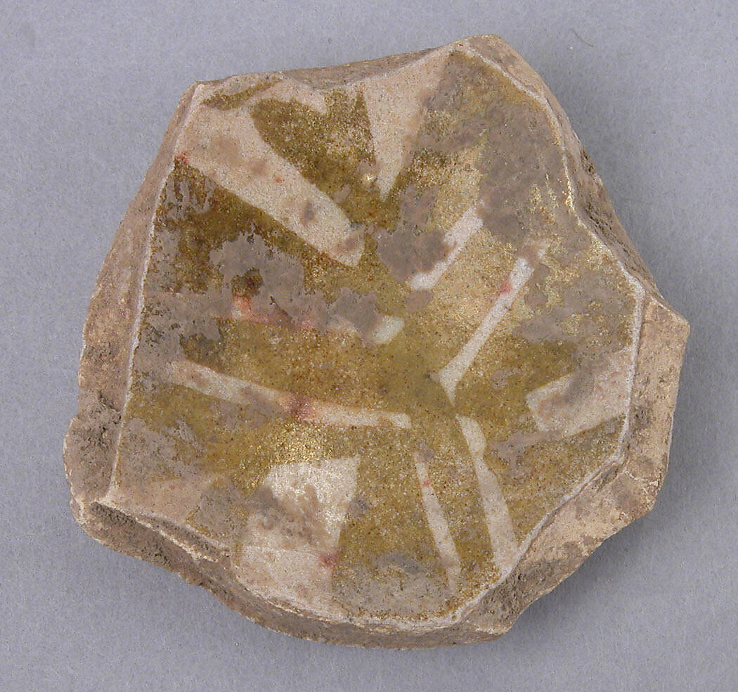 This ceramic fragment was excavated in Ctesiphon, the Sasanian metropolis and administrative capital conquered by Arab Muslim armies in 637. The city continued to be inhabited throughout the era, when it was known in Arabic as al-Mada’in, or "the cities", because of the expansive area it encompassed. Arab and Persian historians and poets indulged in describing al-Mada’in/Ctesiphon’s grand monuments. Muslim rulers also celebrated the glory of these monuments, which through time had acquired symbolic significance due to their association with the city’s imperial past. This was the case of the Taq-i Kisra, an impressive colossal ivan (a vaulted hall with one side open) that was partially dismantled to reuse its bricks in caliphal buildings in the new capital of Baghdad.