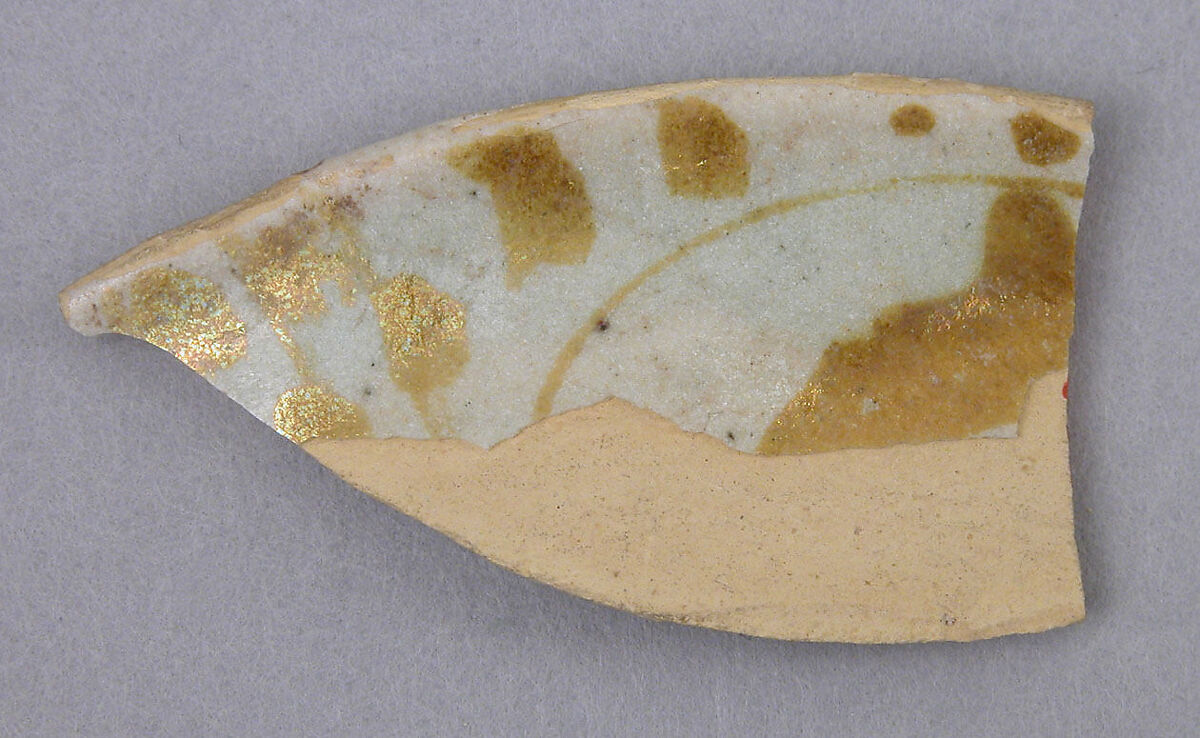 - Medium:Earthenware; luster-painted on opaque white glaze