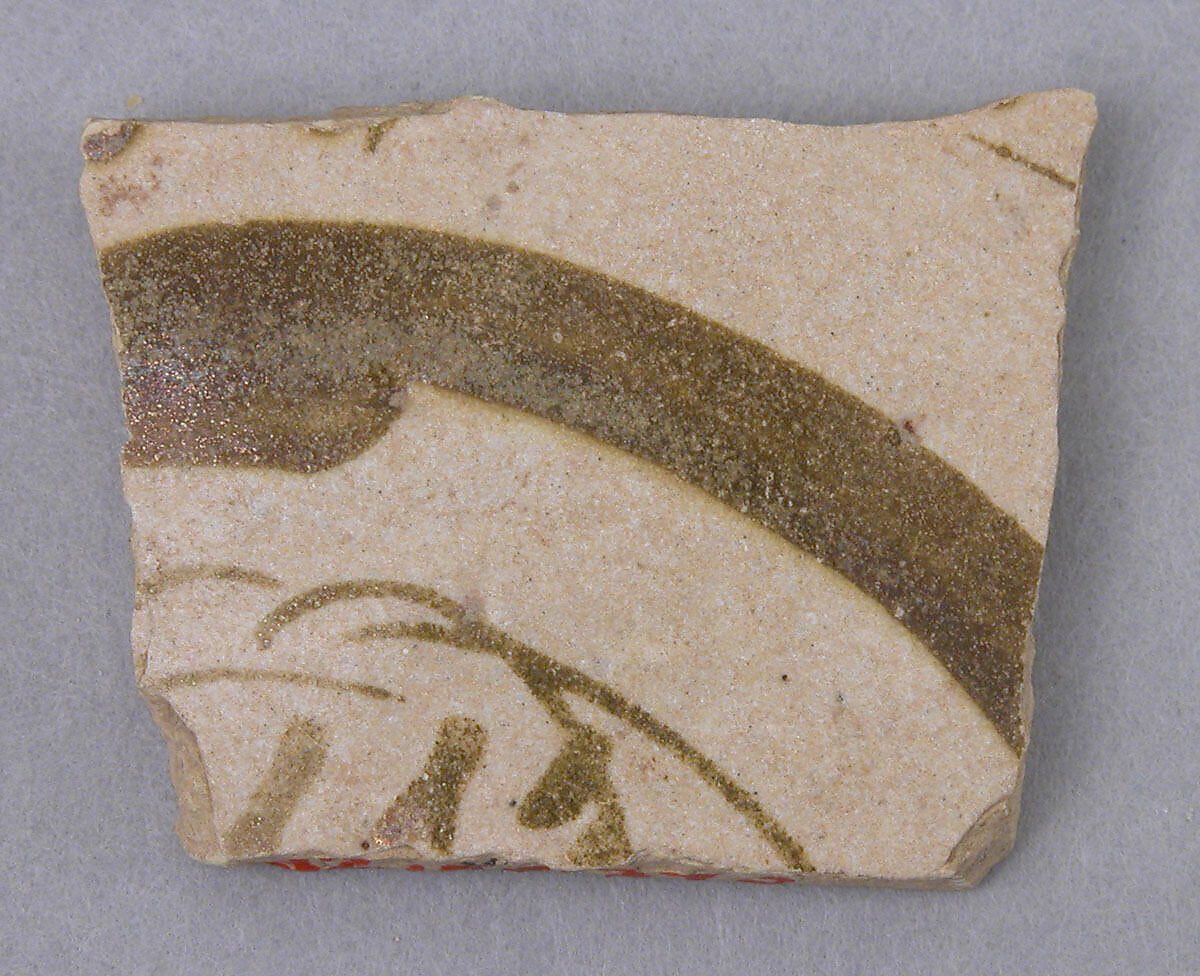 This ceramic fragment was excavated in Ctesiphon, the Sasanian metropolis and administrative capital conquered by Arab Muslim armies in 637. The city continued to be inhabited throughout the era, when it was known in Arabic as al-Mada’in, or "the cities", because of the expansive area it encompassed. Arab and Persian historians and poets indulged in describing al-Mada’in/Ctesiphon’s grand monuments. Muslim rulers also celebrated the glory of these monuments, which through time had acquired symbolic significance due to their association with the city’s imperial past. This was the case of the Taq-i Kisra, an impressive colossal ivan (a vaulted hall with one side open) that was partially dismantled to reuse its bricks in caliphal buildings in the new capital of Baghdad.