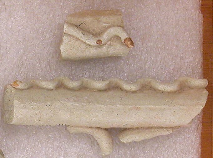Finds like this fragment, which was excavated at a site named Selman Pak I, attest to the continued occupation of Ctesiphon’s urban area in the early Islamic period. The handle would have originally belonged to a ewer, and could have had a variably-shaped thumb rest.