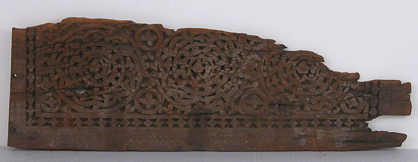 This carved wooden panel came to the museum through an unusual source, the British art and antiquity dealer Sydney Burney (1878–1951), known mostly for his trade in African and modern art and for having served as the President of the British Antique Dealers’ Association. His only ventures into the market for Islamic art are limited to an assemblage of carved wood which he sold to the Met, the British Museum, and the Louvre. It is yet unknown how the London-based dealer obtained these artifacts, of which the large part are said to have been found in Tikrit in Iraq.