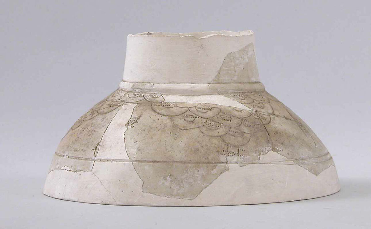 This ceramic fragment was excavated a Qasr-i Abu Nasr, an archaeological site now attached to modern Shiraz in southern Iran. The small town and fortress were located at a strategic point at the intersection of protective mountains, water sources, and along roads entering the plain. The site was occupied, at least intermittently, from the Parthian period (3rd century B.C.–3rd century A.D.) to the Muzaffarid period (13th–14th century A.D.). The major occupation, including the extensive fortress, dates to the Late Sasanian period (6th–7th century A.D.).
