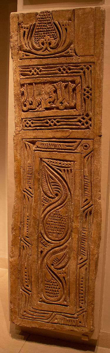 The writing on this panel reads al-akhirin, or "posterity." As the last word in the Qur'anic verse 26:4 ("And ordain for me a goodly mention among posterity"), its presence here may indicate that the rest of this inscription once went around the room where the panel was found. Although calligraphy adorned several of the buildings at Nishapur, this panel was the only inscribed architectural panel found in a domestic setting, perhaps indicating the building was also used for religious purposes.