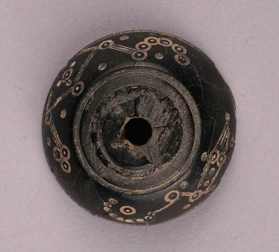 - Medium:Stone, probably jet; incised and inlaid with paint