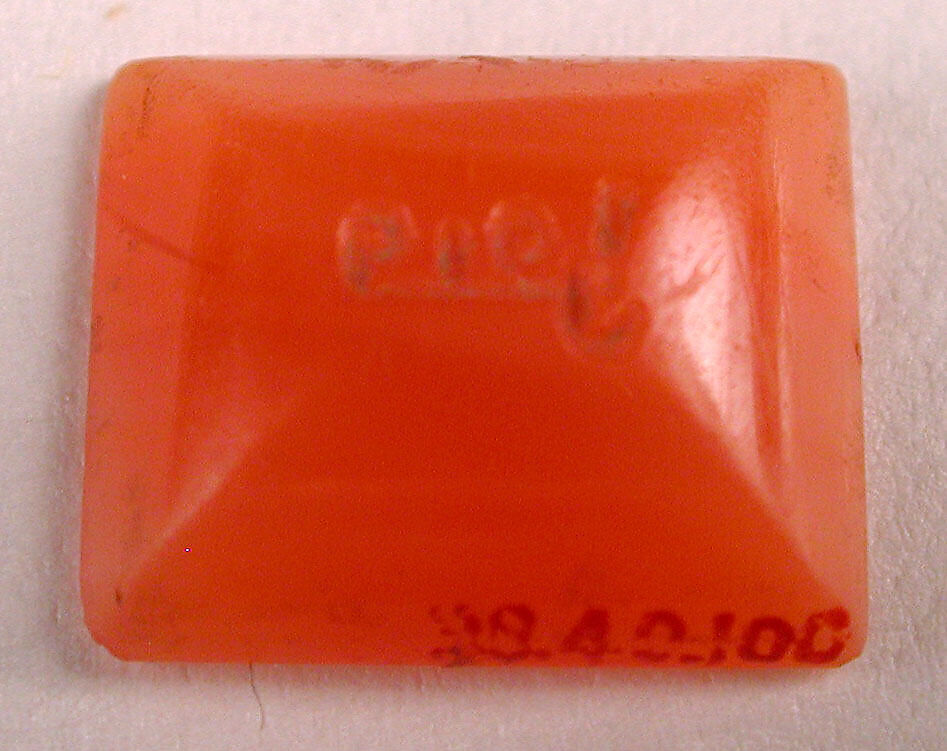 Early Islamic seal stones were made from a variety of stones that came in many shapes and forms. The undeciphered inscription on this pink carnelian stone is a single word and is probably a name.