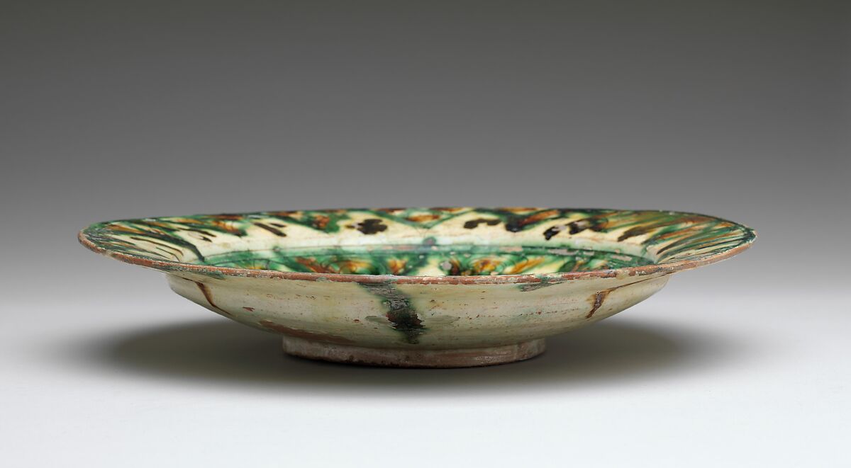 - Medium: Earthenware; white slip, incised and splashed with polychrome glazes under a transparent glaze (sgraffito ware)