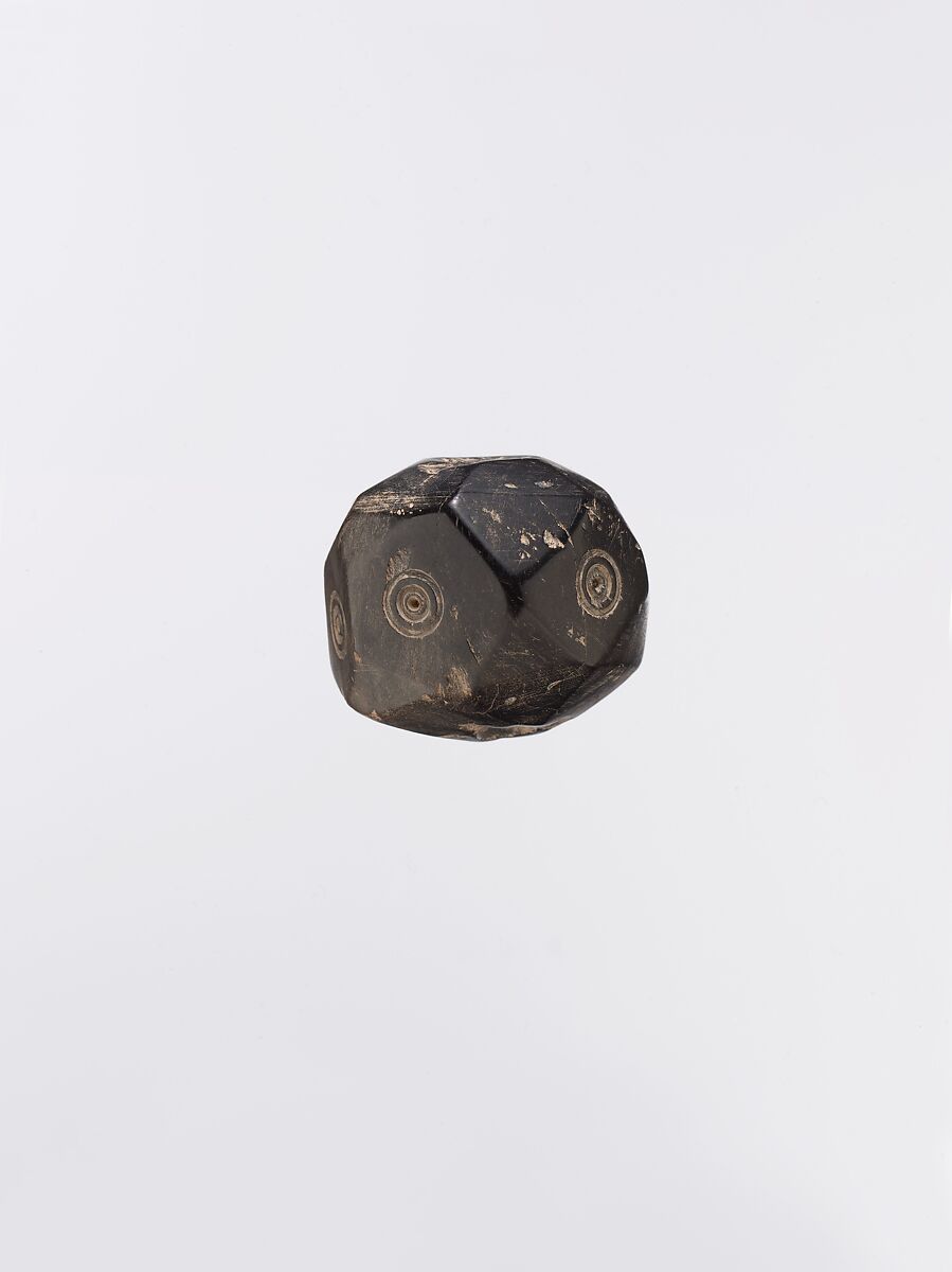 The dot-in-circle motif recalls designs presumed to be of magical significance, most likely an abstract eye to ward off the evil-eye, which serve an apotropaic function. Easily reproduced with a tool and visible in many cultures and times, this symbol may have lost its meaning, and become simply a decorative pattern, or may have one that we have not yet discovered.
