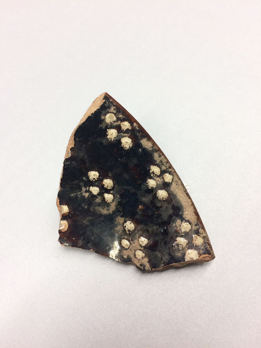 - Medium:Earthenware; red body, purplish black slip, white slip decoration