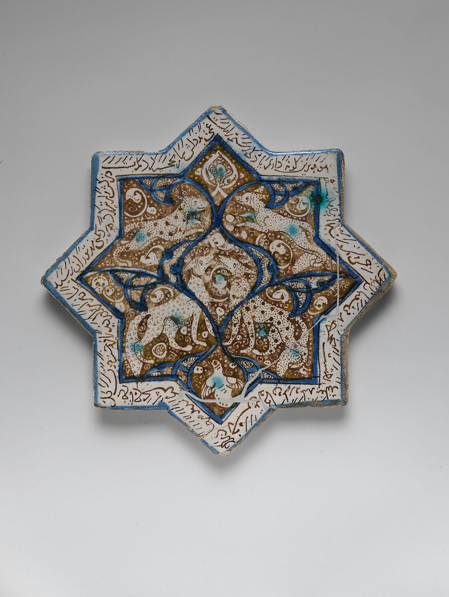 - Title: Eight-pointed Star Tile Depicting Animals and Inscription