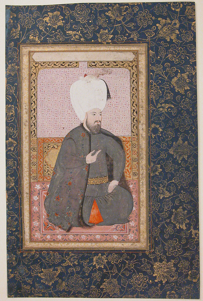 The Ottoman interest in royal portraiture expressed itself in the production of illustrated manuscripts and albums containing images of the succession of sultans. This painting, from an album containing a series of similar sultan portraits, has been identified as a depiction of the early seventeenth-century Ottoman sultan Ahmet I.