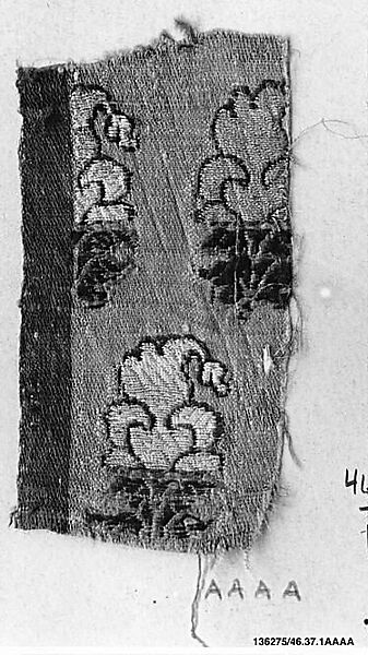 - Medium: Silk and metal wrapped thread; brocaded and stamped