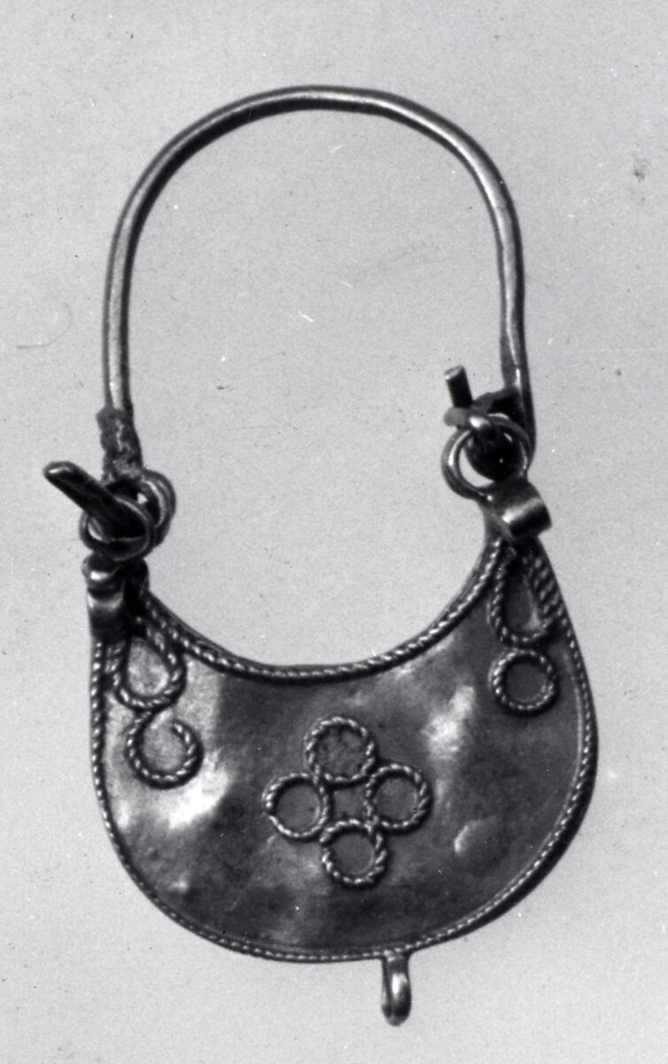 Considering the miniature size of most jewels, the work of Islamic goldsmiths was often technically complex and the artistic results, excellent. The cresecent shape of the earring is a symbol of renewal and regeneration, probably derived from the observation of the cycle of the moon.