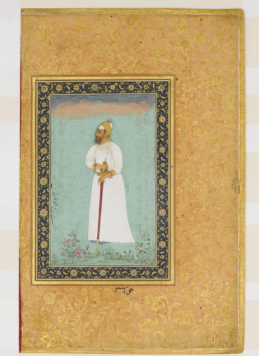- Title:"Portrait of Ibrahim 'Adil Shah II of Bijapur", Folio from the Shah Jahan Album