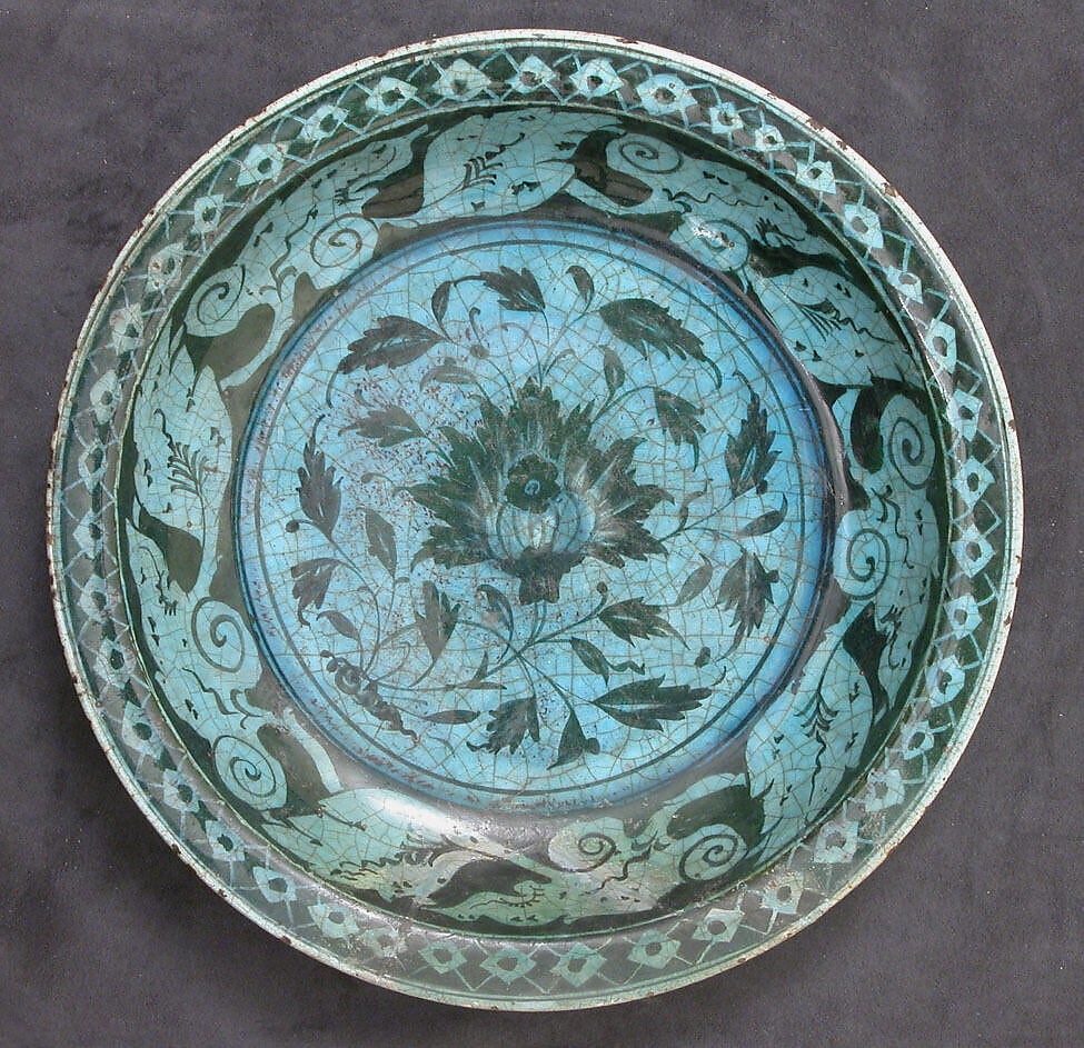 - Medium:Stonepaste; painted in black under turquoise glaze