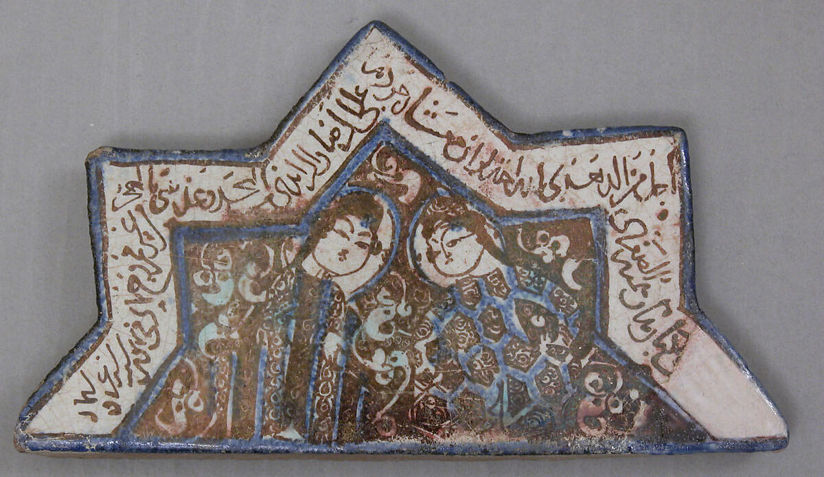 Luster painted tiles for the decoration of representative interiors often have poetry in the margin. This tile is dated to dated "In the months of the year 616 (1218–19)".